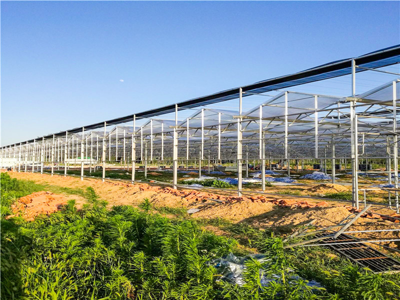 阳光板连栋温室:一跨多尖顶,温室具有小屋顶,多天沟,大跨度等特点,内部可灵活的设置隔断;采光性能好,室内光照均匀;有很强的排水能力,可大面积连栋。