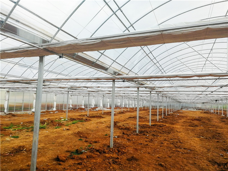 薄膜连栋型温室特性:性价比高、结构稳定、透光保温性能强,拱圆形室顶美观大方,属经济型连栋温室。