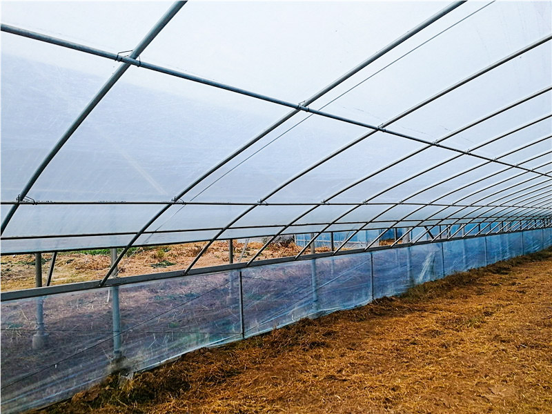 此温室覆盖材料为薄膜(PO膜、PEP膜、长寿膜、PVA膜等),使用年限为3~5年,公司质保5年。