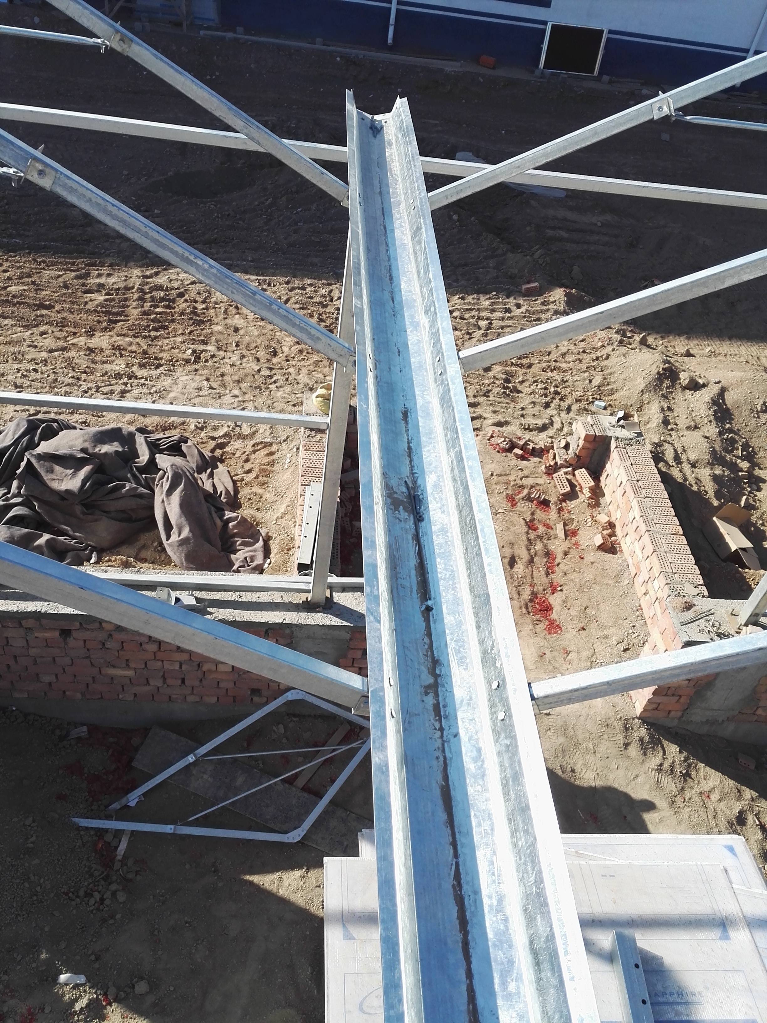 温室大棚结构的桁架主要起连结、增加侧向刚度、承受纵向荷载并传递到柱上的作用,桁架主要由弦杆、腹杆、中撑组成,此外还有端部加劲肋以及端部焊接钢板等构造部分该温室结构的弦杆采用薄壁镀锌方钢管制作,,中撑与弦杆的材料及截面形式相同,腹杆为L型钢,桁架端部通过焊接及螺栓连接的方式与柱子相连。