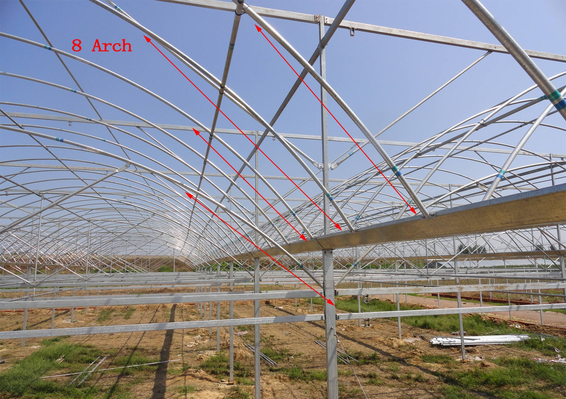 8340型薄膜温室大棚还可以配套电动化设备、实现规模化种植,同时该型号温室土地利用率高,施工简单迅速,造价经济、抗风雪能力强(抗风雪能力使用国标以上的正规厂家材料30厘米的雪温室不会出现坍塌情况)。