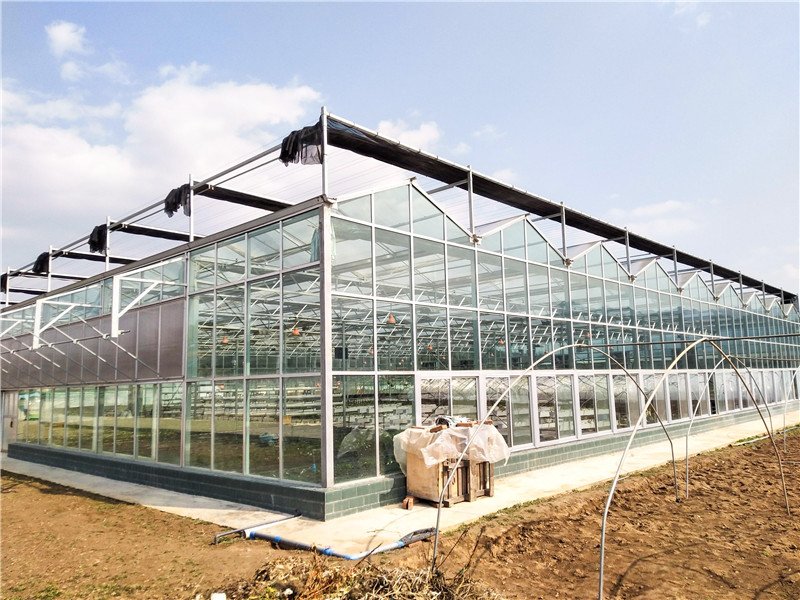 玻璃温室也可做顶部覆盖材料为薄膜、PC板、耐力板、玻璃,四周为玻璃,一般顶部覆盖15丝PO膜、5~8mm阳光板、中空或非中空钢化玻璃较多。四周玻璃一般为单层普通玻璃、单层钢化玻璃、普通中空钢化玻璃、5+6+5mm中空钢化玻璃。内部宽敞明亮,操作空间大,温室利用率高。美观性好,用作农业公司展示、旅游观光、休闲娱乐、交易等较多,也可用作种植,安全系数高。