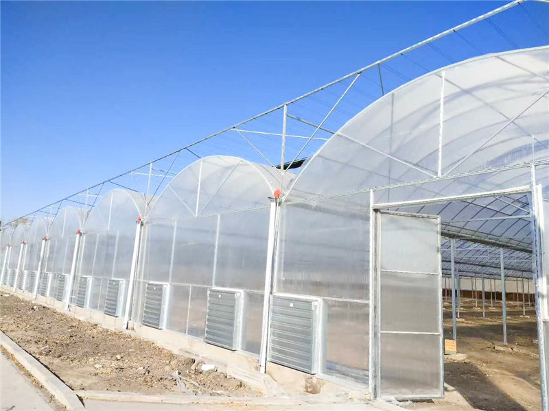 薄膜连栋型温室特性:性价比高、结构稳定、透光保温性能强,拱圆形室顶美观大方,属经济型连栋温室。