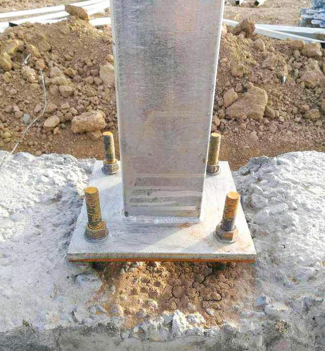 温室大棚基础工程土建费用仅为室内独立柱的预算定额,计算埋深为0.50m。周边条形基础按240mm厚,0.30m高(含垫层1OOmm厚),预埋件的锚固钢筋是锚固作用的主要来源,混凝土对锚固钢筋的粘结力是决定性的,因此预埋件需在混凝土浇灌前埋入,施工时混凝土需振捣密实。目前实际施工中往往由于放入预埋件时,未采取有效措施固定预埋件,混凝土浇铸时往往使预埋件偏离设计位置,影响立柱的安装,甚至无法使用。因此应将预埋件可靠地固定在模板上或钢筋上。