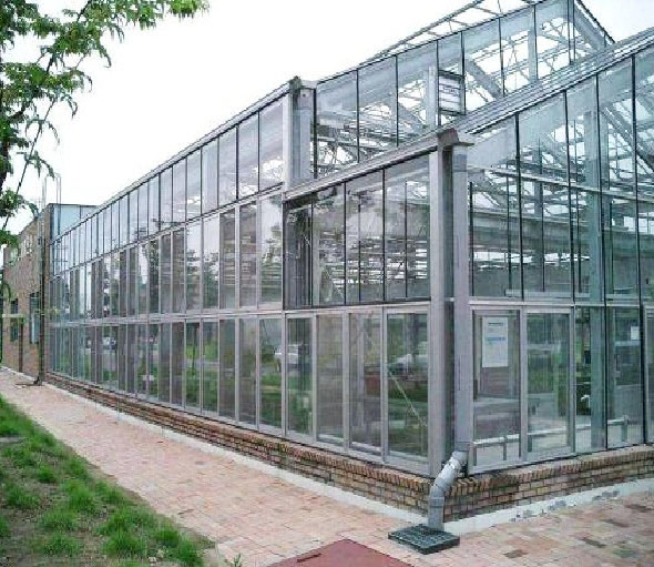 温室顶部一般采用5mm单层钢化玻璃。温室四周一般覆盖普通5mm玻璃、普通中空玻璃、单层钢化玻璃或5+6+5mm中空钢化玻璃。